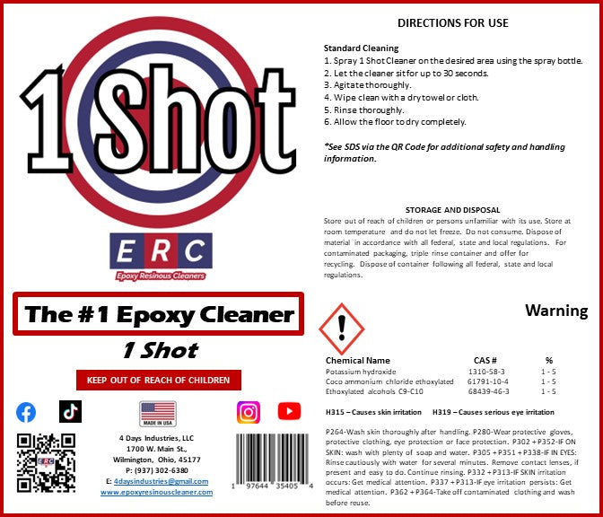 Directions for Use for the 1 Shot. Scan the QR code for SDS information